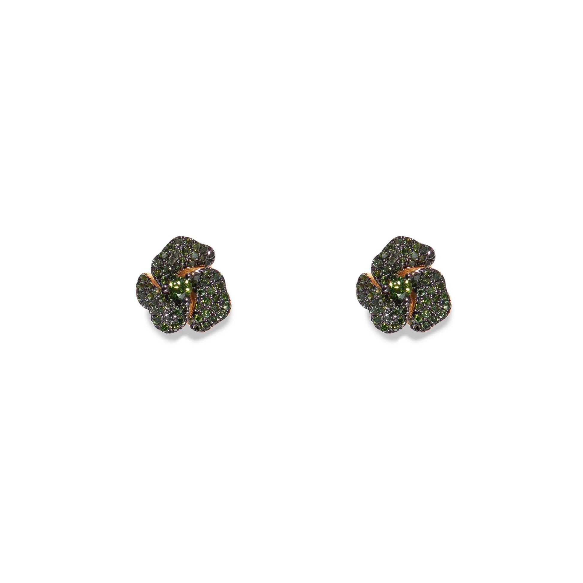 Bloom Mini Flower Green Diamond Earrings in Yellow Gold