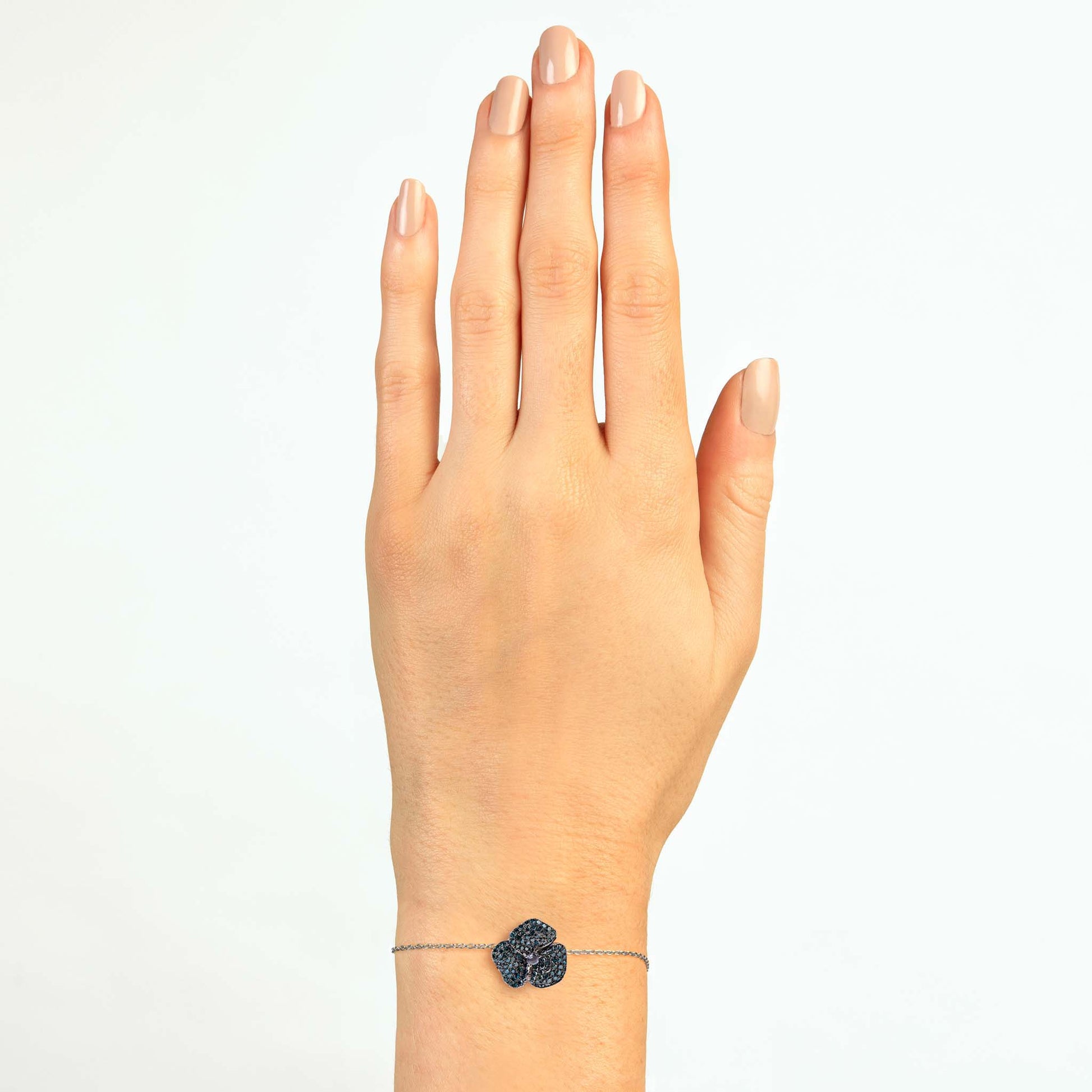 Bloom Small Flower Blue Diamond Bracelet in White Gold