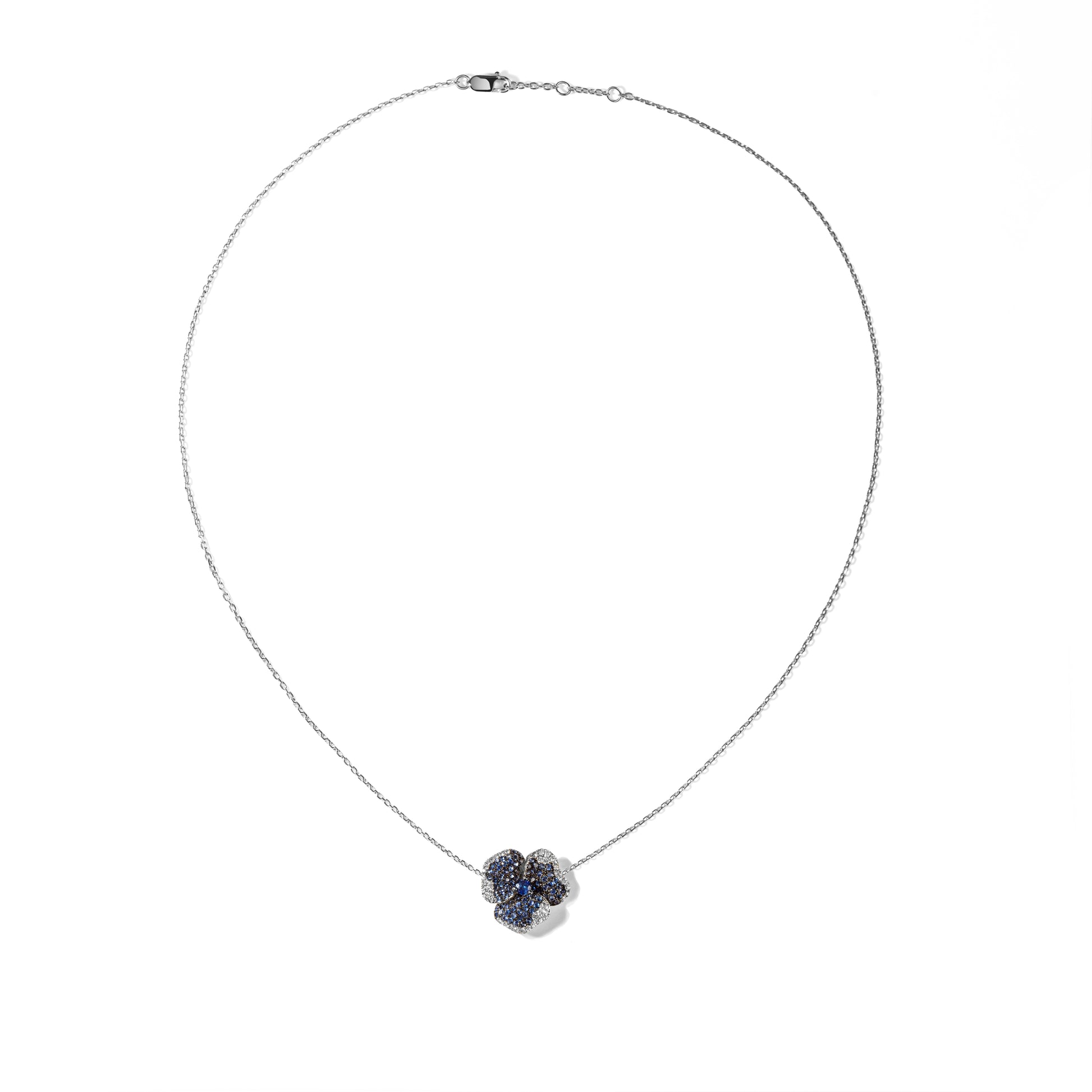 Bloom Small Flower Blue Sapphire Necklace in White Gold