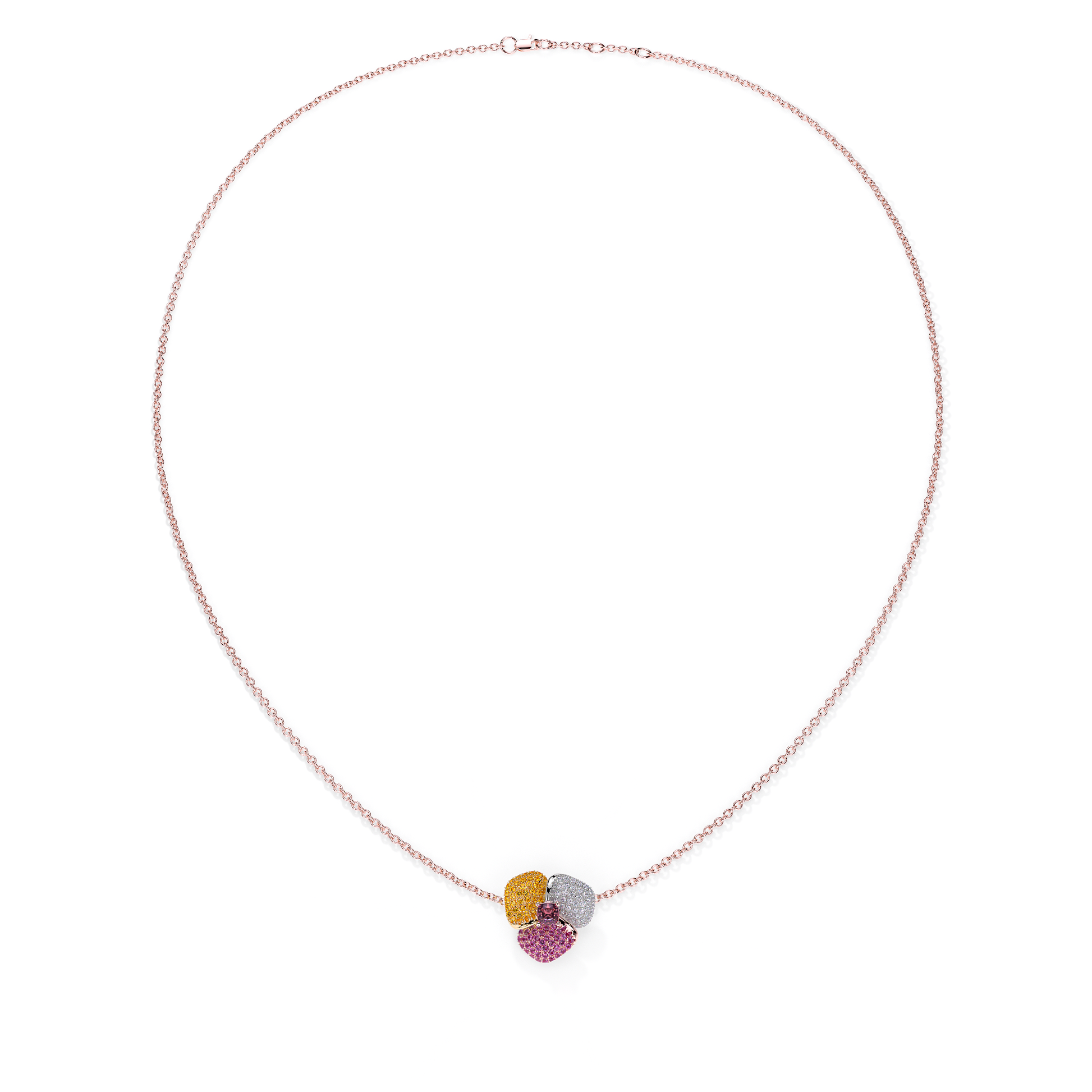 Bloom Small Pink Gold necklace in Dark Pink , Orange Sapphire and White