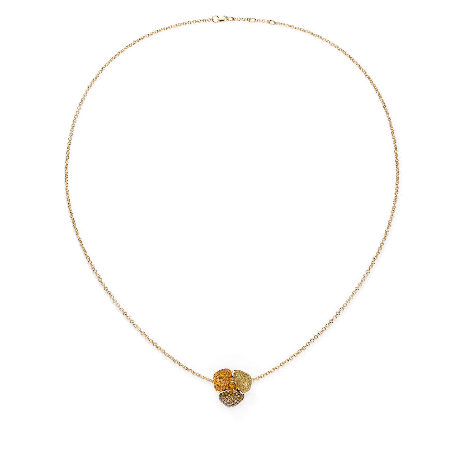 Bloom Small Flower In Brown Diamond & Orange Sapphire And Citrine Cushion Center In Yellow Gold necklace